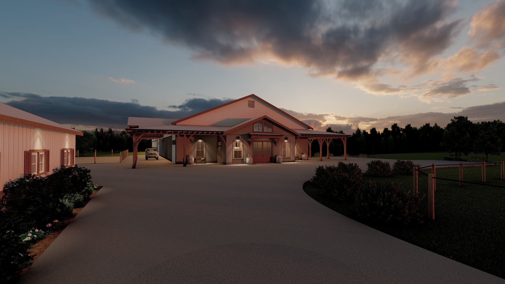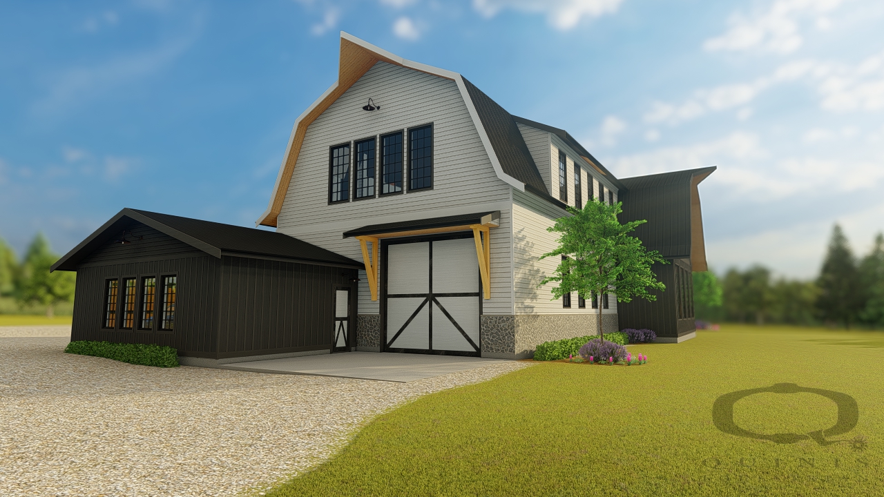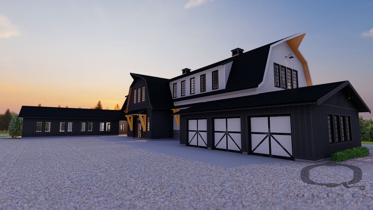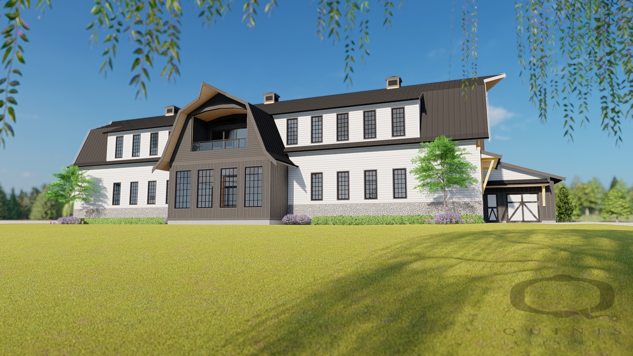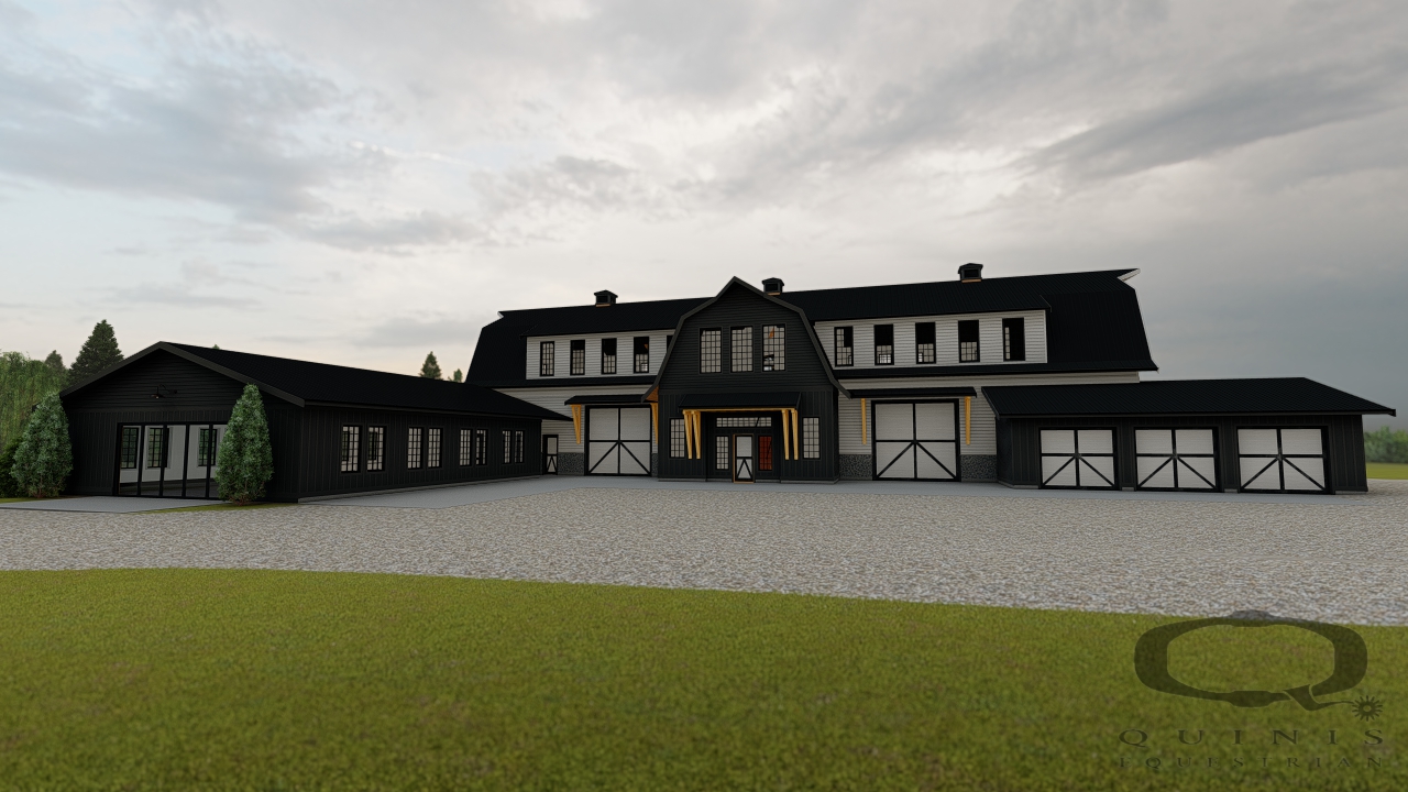 Our team at Quinis designed this structure to serve as a vehicle storage and private gym on our client’s farm property. Included in the design are various amenity rooms and storage for the working farm.